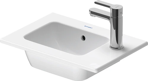 Lavabo manual Duravit ME by Starck Furniture, 1 agujero para grifo, con rebosadero, con banco para grifo, 430 mm