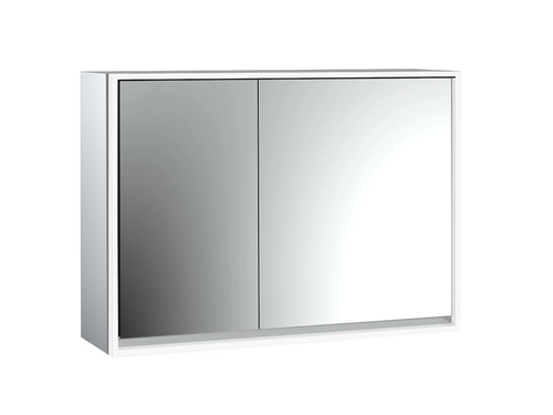 loft Armario con espejo iluminado, 1000mm, 2 puertas, modelo de superficie, espejo/aluminio