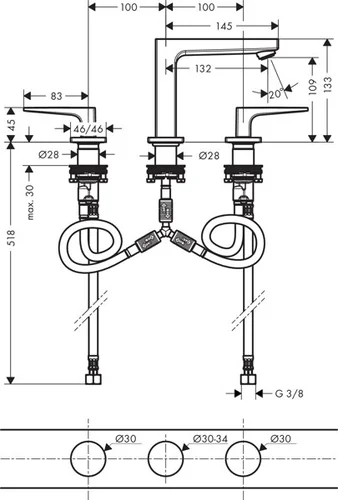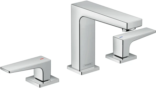 Mezclador de lavabo de 3 agujeros Metropol 110 de hansgrohe, manijas de palanca, desagüe de apertura forzada, proyección 132mm