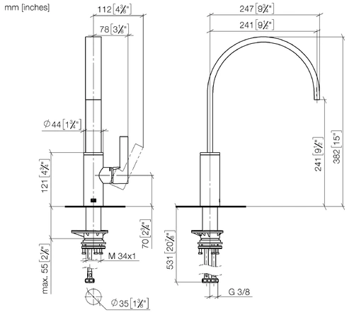 - Altura del grifo: 382 mm