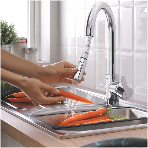 Mezclador monomando de fregadero Grohe Feel, 223 mm de proyección, orientable, con duchas extraíbles
