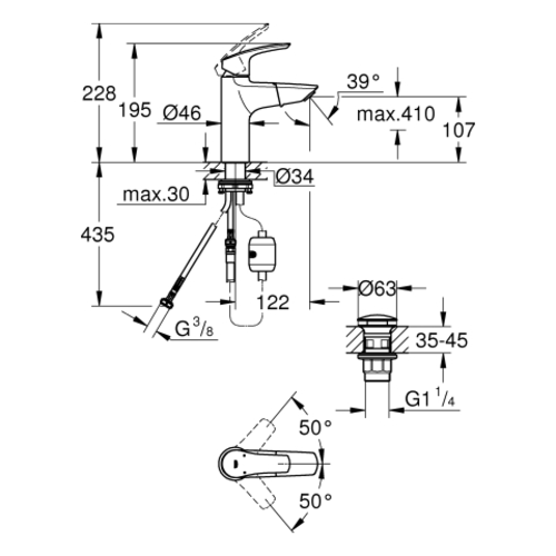 - 1 x mezclador monomando de lavabo, tamaño M