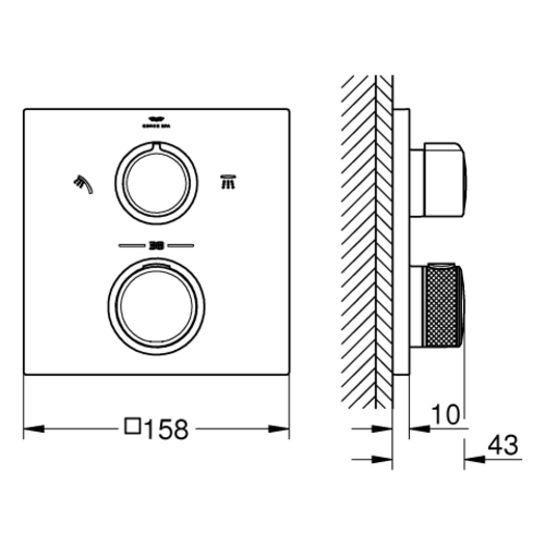 - Grohe Aquadimmer con función múltiple: cierre y regulación de caudal, desviador para 2 salidas