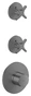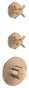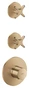 - Combinación de termostato de alto caudal con válvula de cierre y válvula desviadora Duo para controlar 2 consumidores