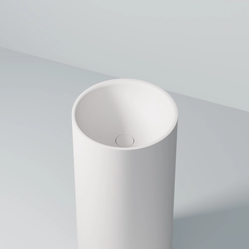 Steinberg Serie 445 Lavabo de pedestal, redondo, 400x400x890mm, SOLIDSurface, sin agujero para grifo, sin rebosadero, blanco mate