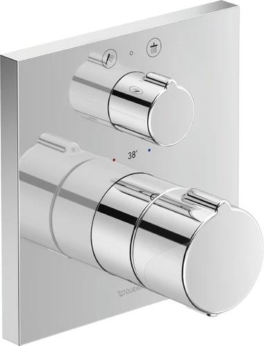 Termostato de ducha empotrado Duravit C.1, roseta cuadrada, 2 consumidores, con válvula de cierre y de conmutación
