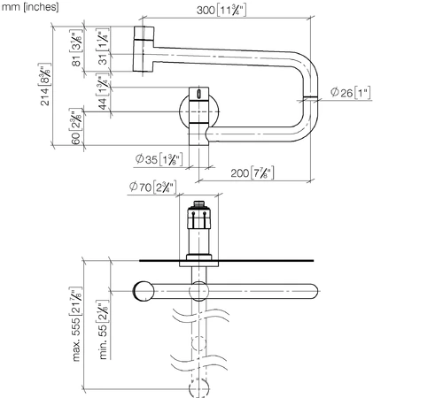 Válvula de agua fría Dornbracht TARA ULTRA POT FILLER, orientable, 500mm de proyección