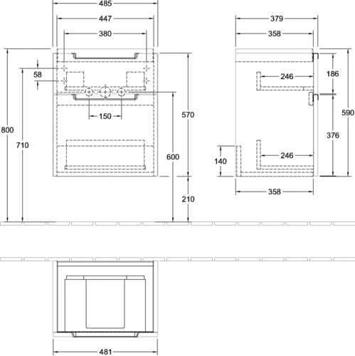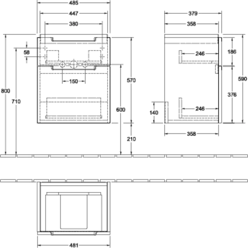 Villeroy & Boch Subway 2.0 mueble bajo para lavabo, 2 extraíbles, centro lavabo, 485x590x380mm
