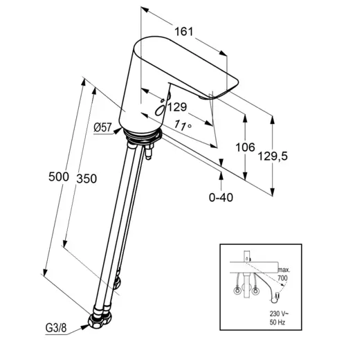 - Fonctionnement sur secteur: robinetterie électronique à brancher sur 230 V AC