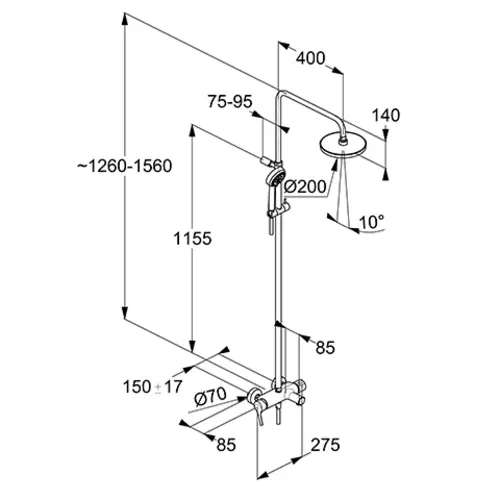 - Douche de tête réglable en hauteur et orientable: barre de douche réglable en hauteur jusqu'à 30 cm, bras de douche orientable latéralement en continu