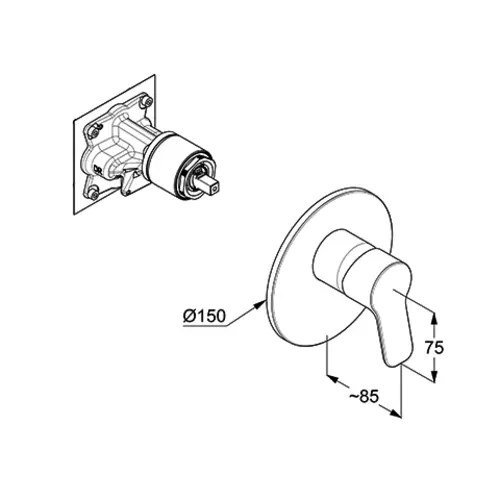 KLUDI PURE&EASY Mitigeur monocommandé encastré pour douche, montage mural, 28 l/min, chrome