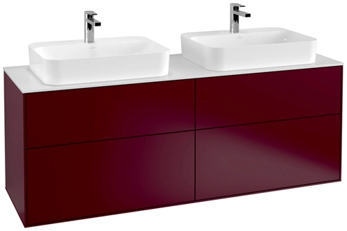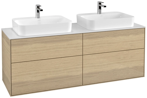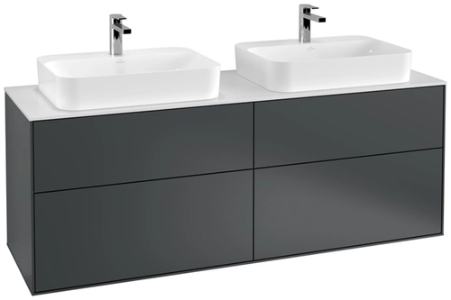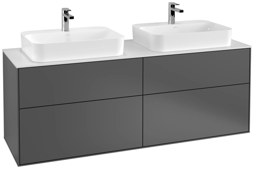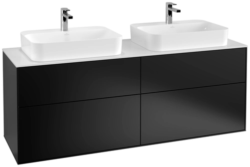 Villeroy & Boch Finion meuble sous lavabo, 4 tiroirs, avec éclairage, pour 2 vasques, 1600x603x501mm, Glass White Matt