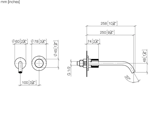 Dornbracht META PURE Mitigeur mural de lavabo sans vidage, saillie 250mm, bec fixe