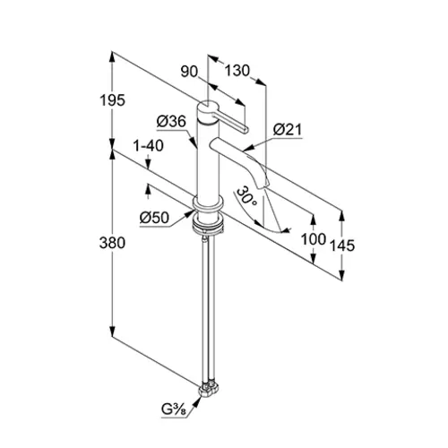 - 1 x Mitigeur monocommande pour lavabo 100 DN 15