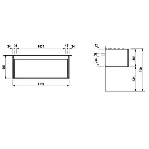 LAUFEN Il Bagno Alessi Meuble sous-lavabo, découpe du siphon à gauche, 1195x490x365mm, 1 tiroir