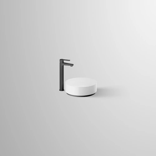 - Vasque à poser disponible avec robinetterie en couleur chrome ou noir mat