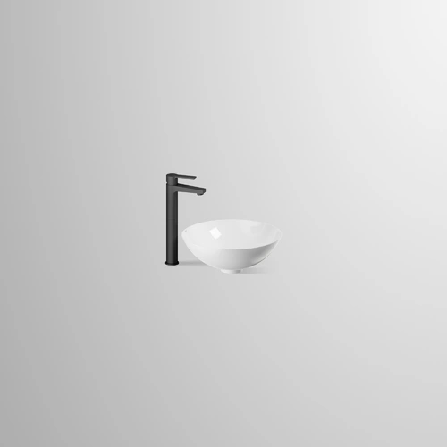 - Vasque à poser disponible avec robinetterie en couleur chrome ou noir mat
