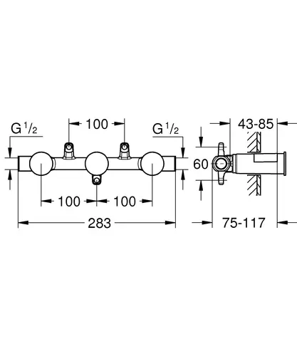 Grohe corps d'encastrement à deux mains, pour robinetterie de lavabo 3 trous