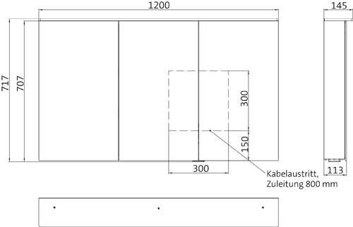 emco flat 2 Armoire de toilette avec éclairage LED avec panneau lumineux, 3 portes, 1200x711x145mm