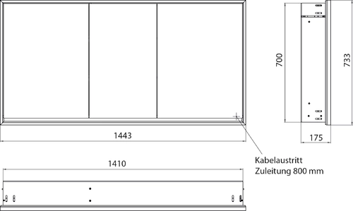 - Mesure (LxPxH) : 1443 x 175 x 733 mm .