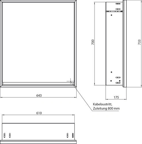 Pour le montage, un cadre d'encastrement Art. n° : 979800001 est nécessaire. Celui-ci n'est pas compris dans la livraison, veuillez le commander séparément.