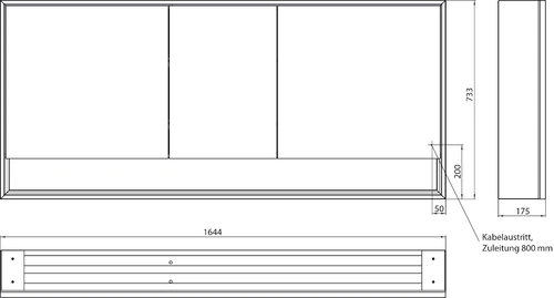 emco loft Armoire de toilette avec éclairage avec compartiment inférieur, 1600mm, 3 portes, modèle apparent