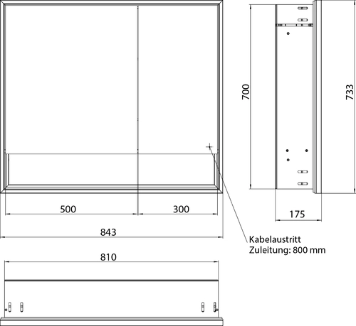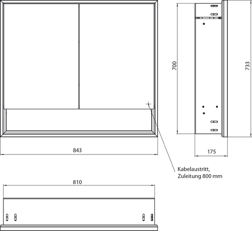 - 1 x Armoire de toilette avec éclairage 800 mm