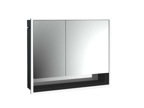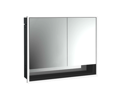emco loft Armoire de toilette avec éclairage avec compartiment inférieur, 800mm, 2 portes, modèle à encastrer, noir/miroir