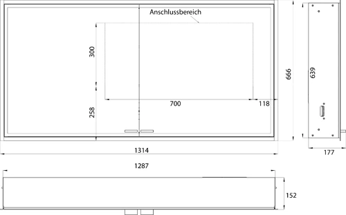 Dimensions : LxH : 1315x666mm (pour d'autres dimensions, voir le dessin pour plus de photos)
