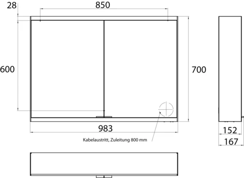 - 1 x Armoire de toilette avec éclairage prime 2, 1000 mm, modèle apparent, IP20