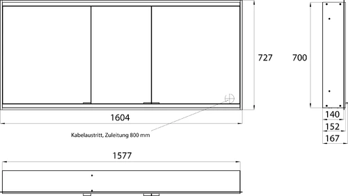 - 1 x armoire de toilette prime, 1600 mm, modèle encastré, IP20