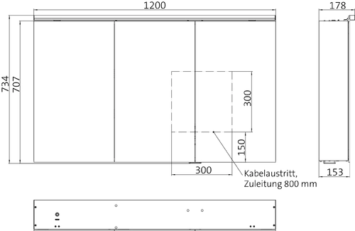 emco pure 2 classic Armoire de toilette avec éclairage LED avec éclairage à poser, 3 portes, 1200x729x178mm