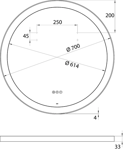 - commande de léclairage par trois capteurs tactiles intégrés dans la surface du miroir