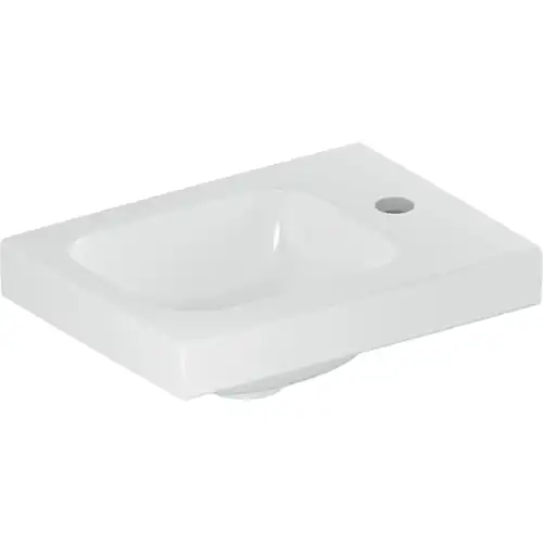 Geberit iCon Light lave-mains, 38 cm x 28 cm, avec trou de robinetterie à droite, sans trop-plein, tablette à droite, 501830
