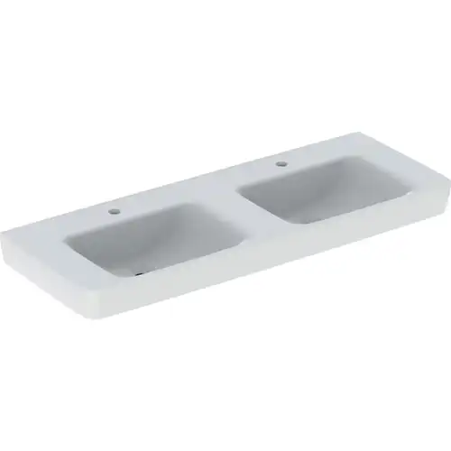 Geberit Renova Plan, lavabo double, 130x48 cm, 1 trou pour robinet, sans trop-plein, 501711