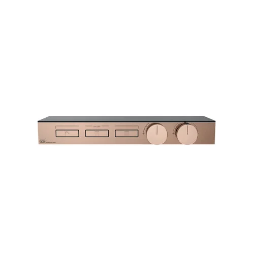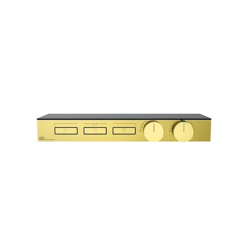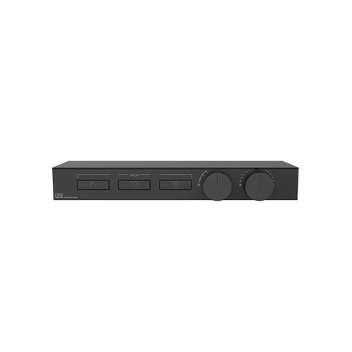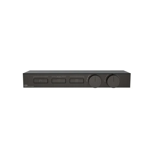Gessi HI-FI, kit prêt à monter pour thermostat haute performance 3/4, commande par bouton-poussoir, tablette en verre de sécurité trempé noir, montage horizontal avec 3 sorties séparées