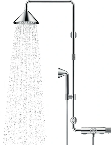 hansgrohe AXOR Starck ShowerSolutions Tuyau de douche avec thermostat et pomme de douche 2 jets conçu par Front