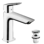 hansgrohe Logis Mitigeur de lavabo Fine, ComfortZone110, garniture découlement Push Open, saillie 121mm