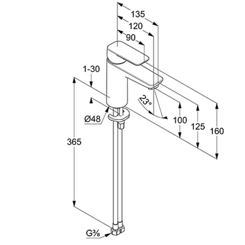 KLUDI PURE&STYLE Mitigeur monocommandé pour lavabo, hauteur de bec 100mm, sans garniture d'écoulement, EcoPlus