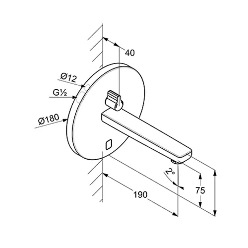 KLUDI ZENTA SL E Robinetterie de lavabo électronique, saillie 190mm, rosace ronde, 5 l/min, alimentation électrique ou par pile, chrome