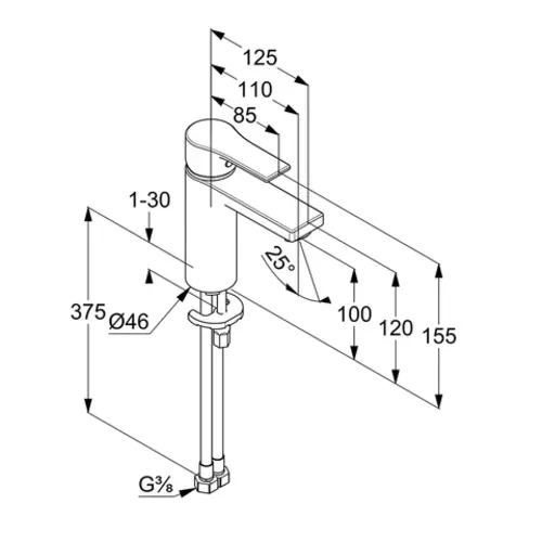 KLUDI ZENTA SL Mitigeur monocommandé pour lavabo, hauteur de bec 100mm, sans garniture de vidage, chrome