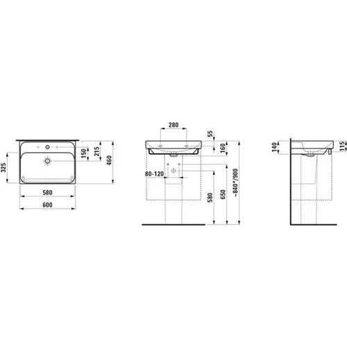 LAUFEN Meda lavabo, encastrable, 600x460mm, 1 trou pour robinet, sans trop-plein