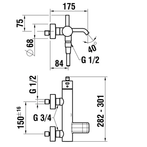 LAUFEN Meda Mitigeur de bain, apparent, avec accessoires, chromé