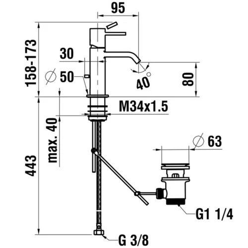 LAUFEN Meda Mitigeur de lavabo, avec soupape découlement, saillie 95mm, chromé