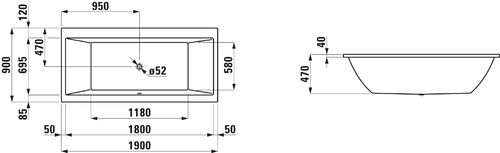 LAUFEN PRO Baignoire à encastrer 1900x900x460 mm, blanc
