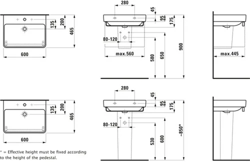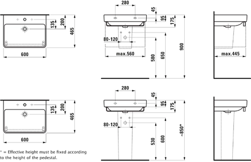 LAUFEN PRO S lavabo, 3 trous pour robinet, avec trop-plein, 600x465mm