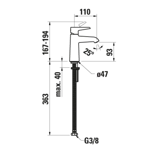 LAUFEN PURE Mitigeur monocommande de lavabo, bec fixe, porte-à-faux 110 mm, sans robinet de vidange, chromé
