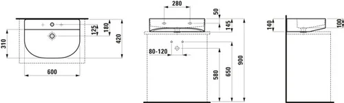 LAUFEN Sonar lavabo à poser, 3 trous pour robinet, avec trop-plein, 600x420mm, poli
