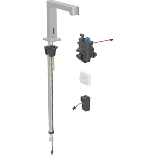 - Pour le montage dans les ensembles de montage brut Geberit pour robinetterie électronique de lavabo, montage au sol, avec boîtier de fonction UP