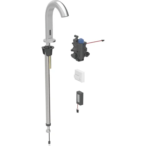 - Pour le montage dans les sets de montage brut Geberit pour robinetterie électronique de lavabo, montage au sol, avec boîtier de fonction UP